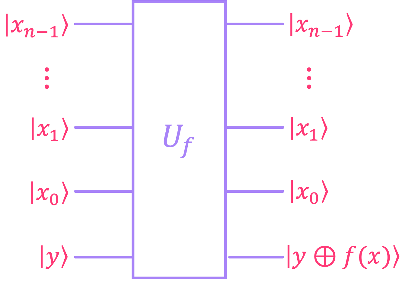 \(f_2(x) = 1\). The output \(|f(x)\rangle\) is always \(|1\rangle,\) regardless of the value of the input \(|x\rangle;\).